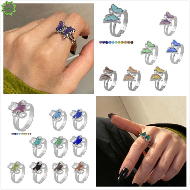 1 Nhẫn Hình Bướm / Ngôi Sao / Trái Tim Thay Đổi Màu Sắc Theo Nhiệt Độ Có Thể Điều Chỉnh free ship
